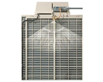 Water mist spray system for outdoor units is installed to make the heat exchange efficiency higher. By spraying pulverized water droplets, moisturizing of heat exchanger is largely curtailed while the effect of water sprinkling is maintained.* This system is available in Japan only