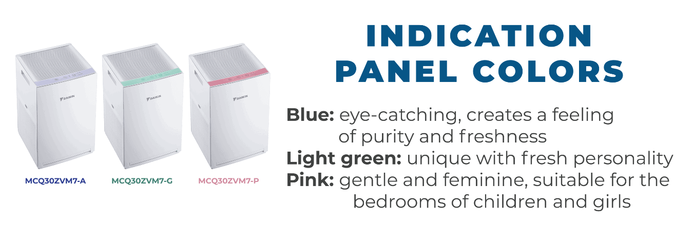 Multiple choices of panel indication colors (Grey, Blue, Green, and Pink) that seamlessly blend with the interior design of any room and has a wider suction area in three directions.